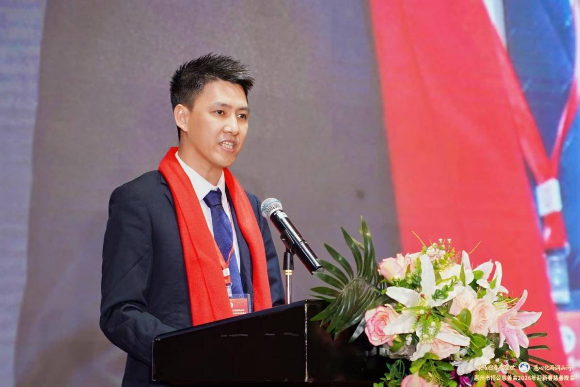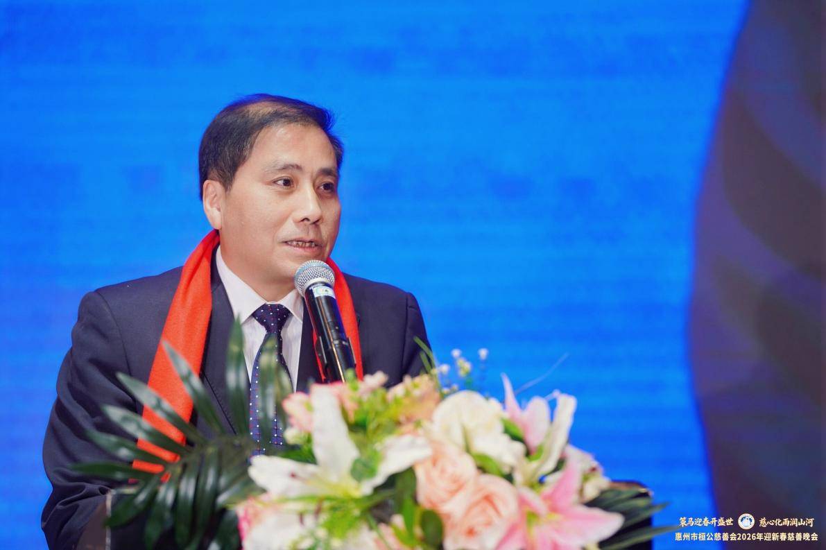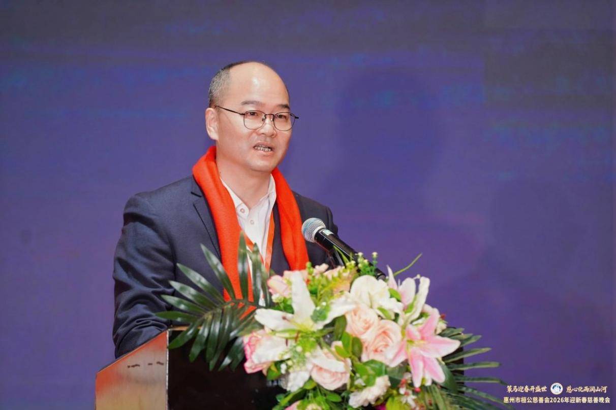 随后,惠州市桓公慈善会常务副会长陈耿在先生致欢迎词。他代表慈善会向莅临现场的各位领导、嘉宾及爱心人士致以诚挚问候,感谢社会各界长期以来对慈善事业的信任与支持,并展望2026年公益新征程,呼吁更多人加入爱心行列,携手书写慈善新篇章。
