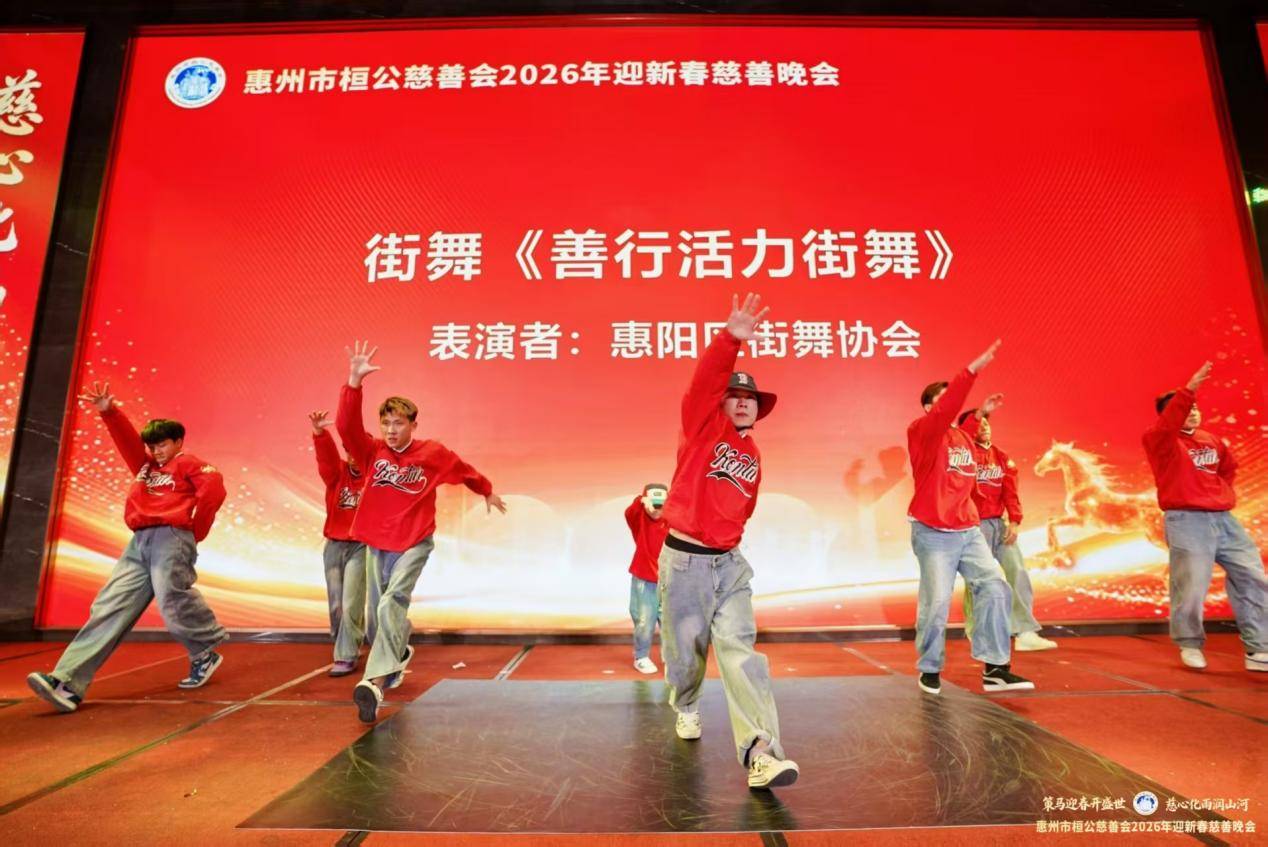 最后,惠州市桓公慈善会2026年迎新春慈善晚会由会员表演的舞蹈《全家福》拉开序幕。惠阳区爱国拥军促进会、惠州市新华职业学校、桓公慈善会党支部、妙音合唱团、惠阳区归善志愿服务文艺团、惠阳区街舞协会接连献上精彩文艺演出,为晚会增添满满活力与温馨氛围画上圆满句号。