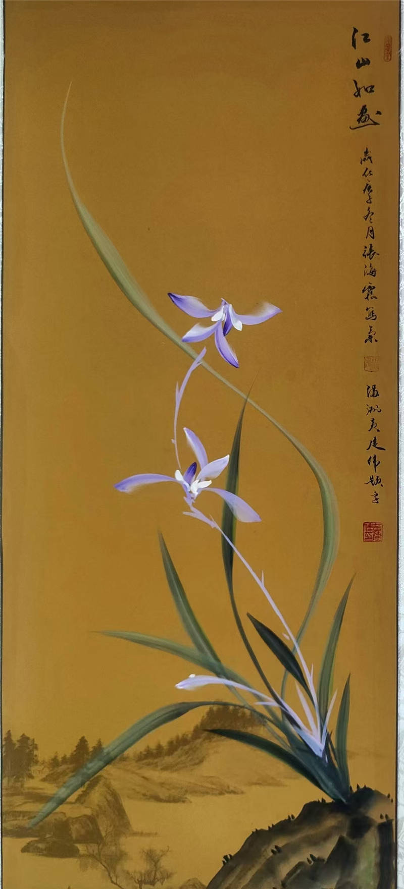 “兰”画派,表面画兰,实则画的是这种‘坚守’,对传统文化的坚守。她的兰画被选为国礼,绝非偶然。一位文化参赞曾说:“张老师的兰画,有中国文人的风骨,有民间大地的温度,更有这个时代需要的精神气度。一株兰,就是一个中国的故事。” 那是一幅《空谷传香》我在题跋中写道:“兰生空谷,不为无人而不芳;君子修道,不为困穷而改节。”这不仅是兰的品格,也是中国文化的品格,更是无数普通人坚守的品格。”如今,张海霞最大的心愿是将“兰”艺术与精神传承下去。