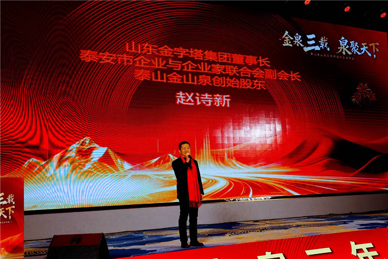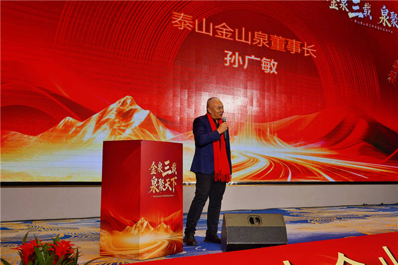 本次活动以“让‘水中黄金’走进千家万户”为核心主题,既回顾了品牌三年深耕历程,更推出多款重磅新品,为高端天然饮用水市场注入新活力。泰安恒信集团董事长陈书来在致辞中,对三年来关注、助力泰山金山泉成长的合作伙伴、消费者及团队成员表示诚挚感谢,强调品牌发展离不开社会各界的信任与陪伴。重申了泰山金山泉以“传承泰山文化、提供天然优质饮用水”为核心使命,坚守“品质为本、生态优先”的发展原则,让更多人知晓并享用到泰山本土优质水源。作为山东泰山雨露饮品有限公司旗下核心品牌,泰山金山泉自诞生之日起便坚守“以自然馈滋养,以品质赢信赖”的初心。