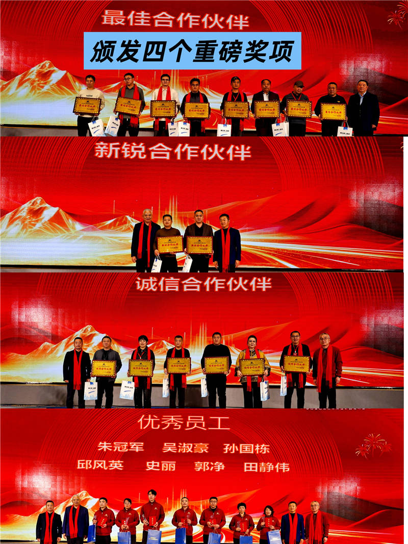 此刻,会议进入最激动人心的环节——荣耀经销商颁奖盛典!首先颁发的是“最佳合作伙伴奖”。他们以敏锐的市场洞察、高效的执行能力,成为荣耀最坚实的后盾,共同书写了市场拓展的壮丽篇章。紧接着,“新悦合作伙伴奖”揭晓。作为行业新锐,他们以创新思维和蓬勃活力,为荣耀市场注入新鲜血液,展现了无限潜力与可能。最后,重头戏“金山泉功勋伙伴奖”隆重登场。这一奖项,是对长期与荣耀并肩作战、贡献卓越的伙伴的最高赞誉。他们如同金山泉般,源源不断为荣耀输送着力量与支持,是荣耀发展历程中不可或缺的宝贵财富。全会场以热烈的掌声,向所有获奖伙伴致以最崇高的敬意!愿未来,我们继续携手前行,共创更加辉煌的明天!