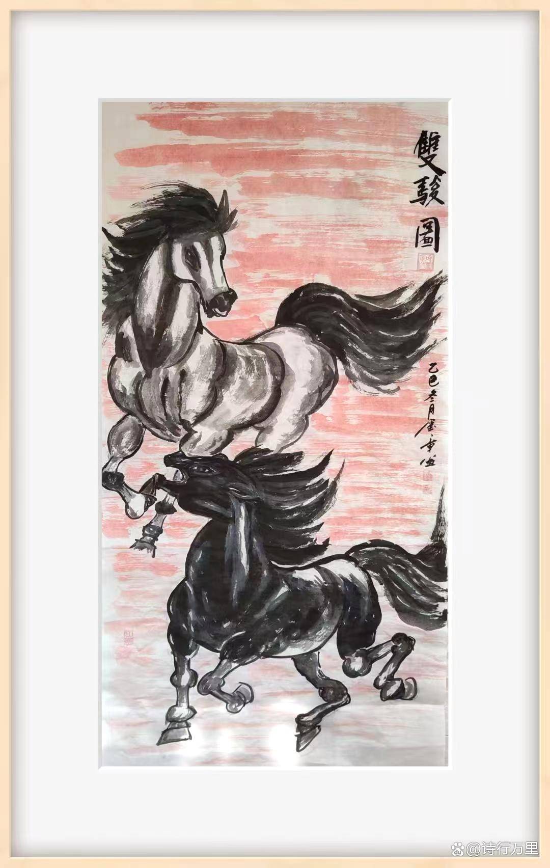 悲鸿遗韵襟怀阔,今笔抒怀气脉绵。
