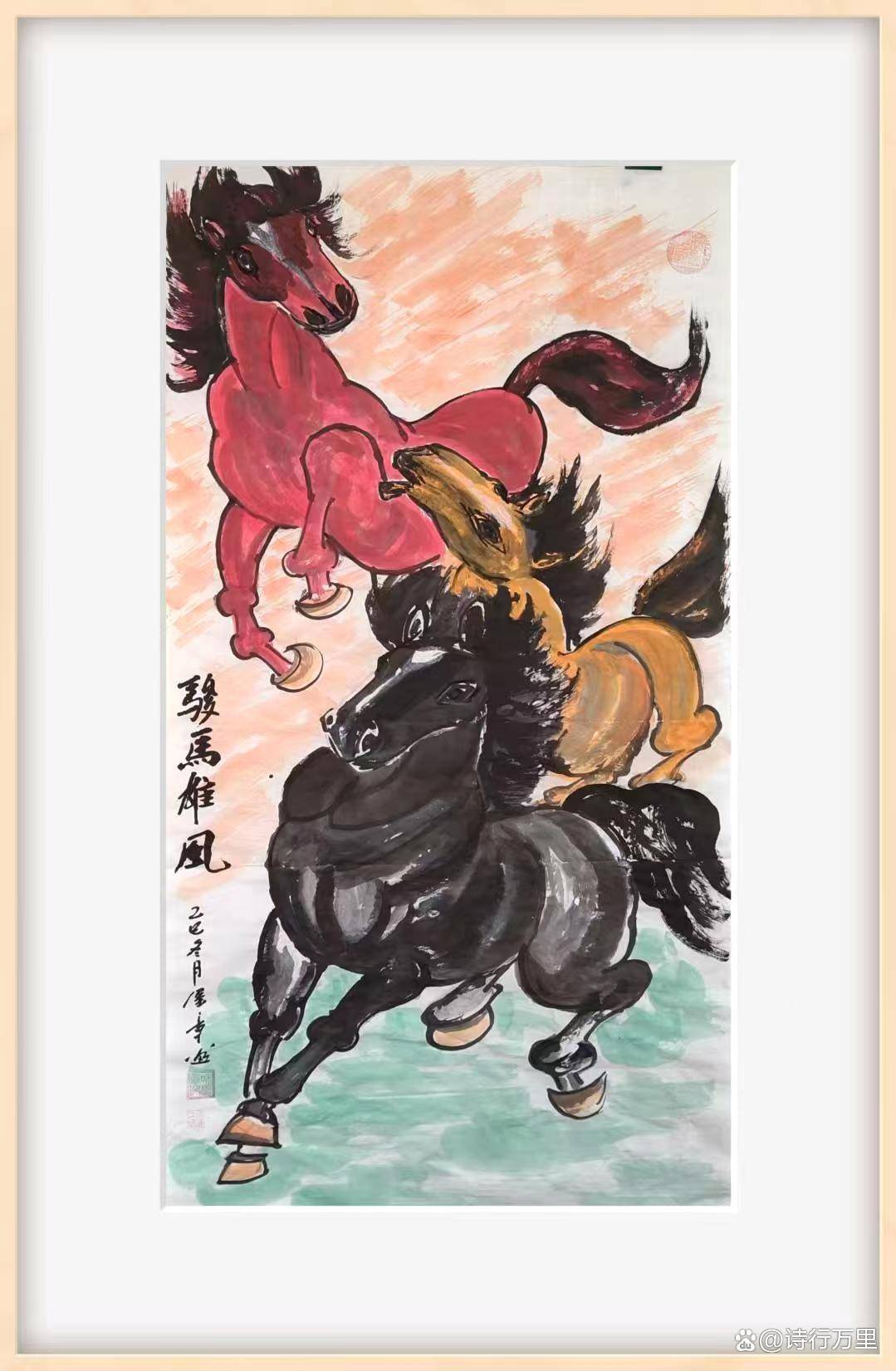 同时,其作品中亦透着一股文人画的风骨与情怀。没有繁杂的背景堆砌,没有刻意的色彩炫技,仅以笔墨为媒,以骏马为介,便将对生命的礼赞、对理想的追求、对时代的讴歌娓娓道来。观者在欣赏作品的同时,既能感受到艺术之美,更能汲取到奋进向上的精神力量。