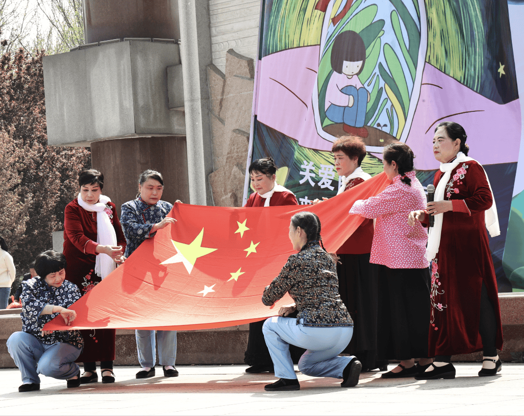 四、艺润童心:文艺传善意 笔墨寄温情 文艺汇演环节,各大文艺社团倾情献艺,以艺术为媒传递大爱无疆。开场大鼓《泰山古韵》气势雄浑,敲响生命力量与守护决心;舞蹈《中华龙》《烟雨红妆》刚柔相济,舞出民族气魄与温婉情怀;民乐合奏《地道战》《赛马》激昂奔放,传递团结奋进与自由驰骋;戏曲《红梅赞》《绣红旗》韵味醇厚,礼赞坚贞不屈与家国情怀;情景剧《过雪山草地》再现峥嵘岁月,致敬每一份不离不弃的坚守;非洲鼓《布谷鸟》节奏明快,特殊孩子与志愿者同台律动,以节奏跨越语言隔阂;歌曲《守护》《生活是那样美好》温润动人,合唱《长征》《共筑中国梦》气势恢宏,唱出同心向未来的坚定信念。