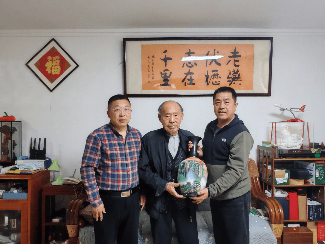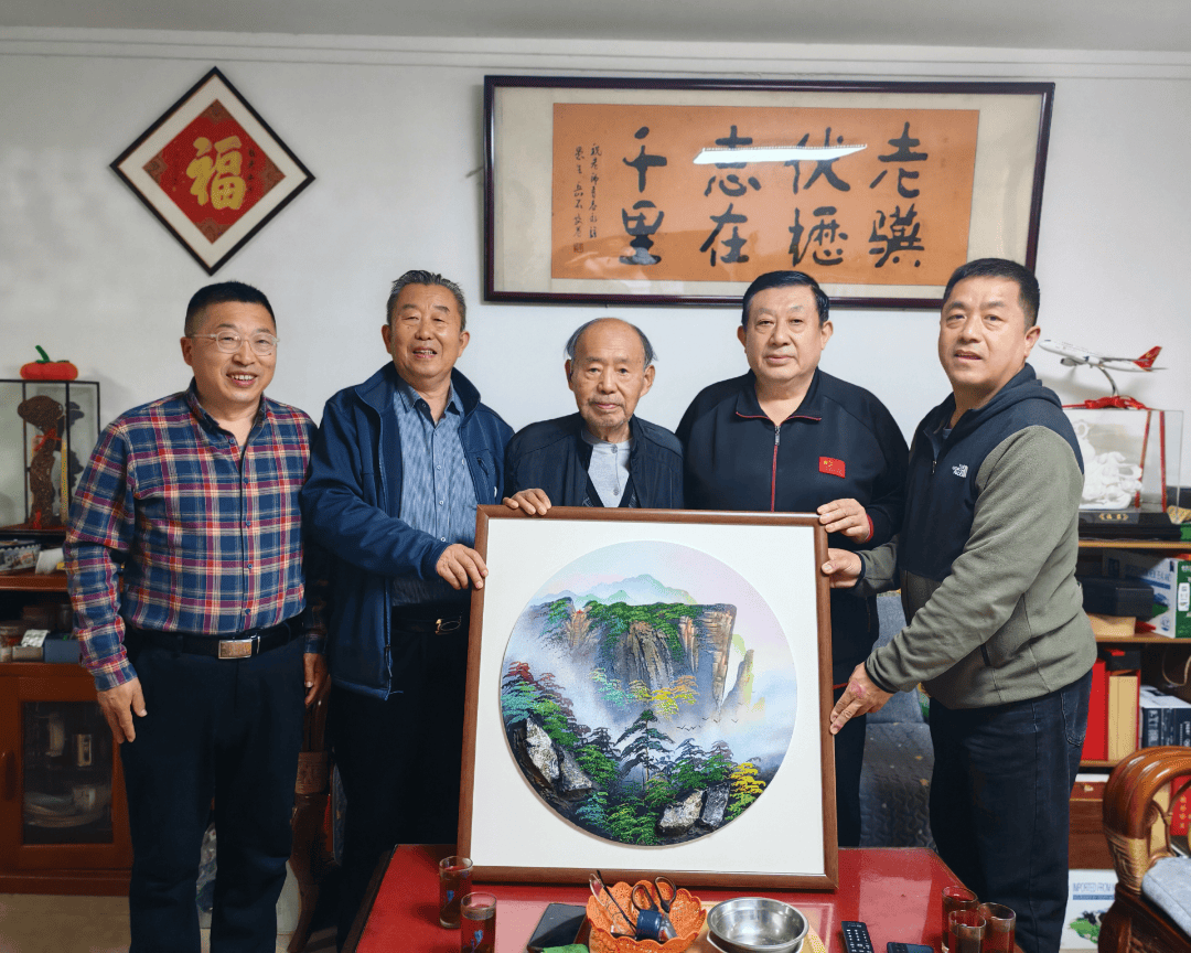 一行人带着精心筹备的厚礼奔赴这场文化之约:以“一山一水一圣人”为主题创作的泰山宝石画、泰山石敢当朱砂拓片、泰山主题陶瓷艺术品,以及汲取泰山山水灵气的泰山女儿茶。每一份礼品,都承载着泰山的雄浑灵秀、匠人的赤诚匠心、齐鲁儿女的真挚情谊,更是对骆承烈先生毕生治学弘道、深耕儒学传播的崇高礼赞与诚挚敬意。